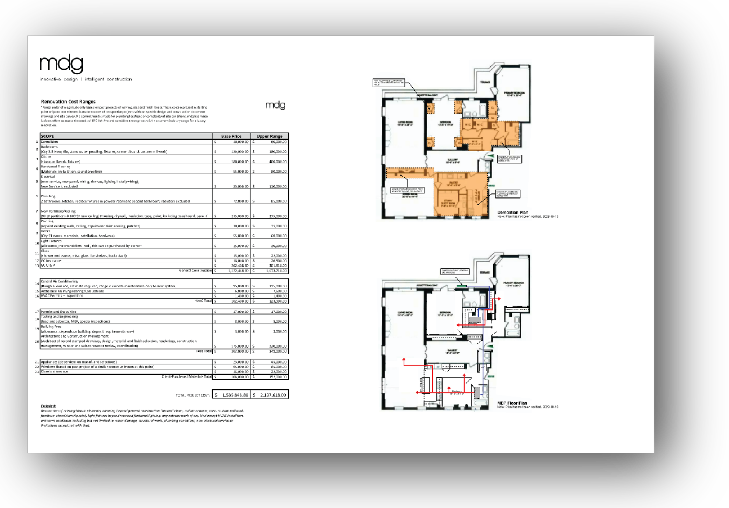 Sample Vision Package materials that were created for a property on 5th Avenue that helped sell an apartment that needed a renovation to bring the unit up to it’s full potential.